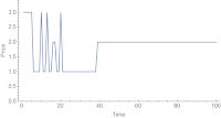 [1] Additionally, I went through and did random trades among the agents (select two agents at random, and if one agent has more widgets than the other and the other has money at the price dictated by the future allocation — i.e. the allocation that would result from a trade — there's a trade). This eventually produces an equilibrium (an equilibrium price of 2 with a uniform allocation):