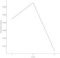 we can look at the information entropy of these allocations, and it is indeed maximized for the equilibrium price p = 2 (by construction):