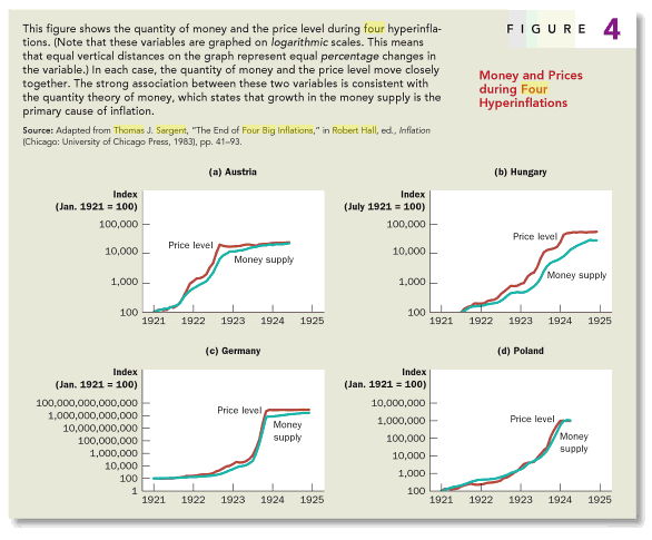 It's from Principles of Economics, Volume 1 by Mankiw. Even this is taking "theoretical model" fairly loosely. First off, these graphs don't even appear in the original paper by Sargent. Second, the graphs only loosely imply that P = k M, however economists don't actually believe the k in that equation is constant. Third, this only covers a four years of the post WWI hyperinflation.