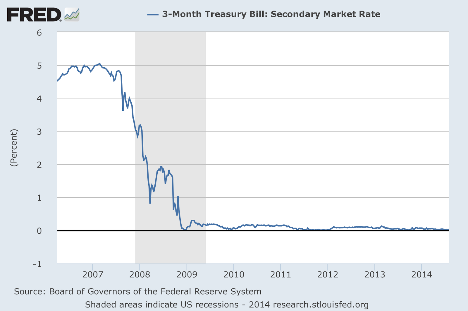 I thought this was ridiculous; anyone can see that the 3 month interest rate dropped precipitously (to the zero lower bound) at the onset of QE: