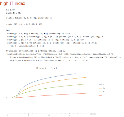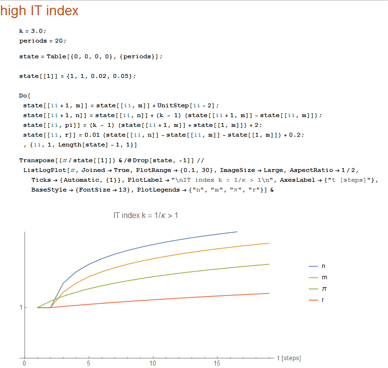 PS Here is the (very simple) code (onset of monetary expansion at t = 2, well, ii = 2). To get the other results, I used k = 1.1 and k = 0.9